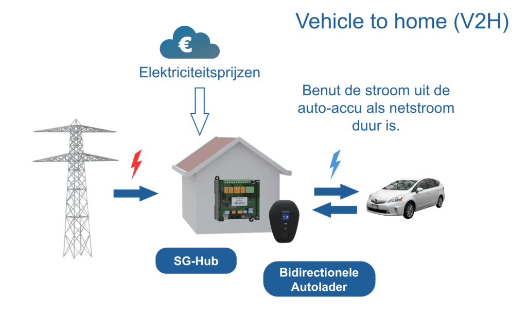 De aansturing van de autolader via SG-Hub is in ontwikkeling. Dit is één van de functies van de SG-Hub, die ook warmtepompen en PV-systemen aanstuurt.