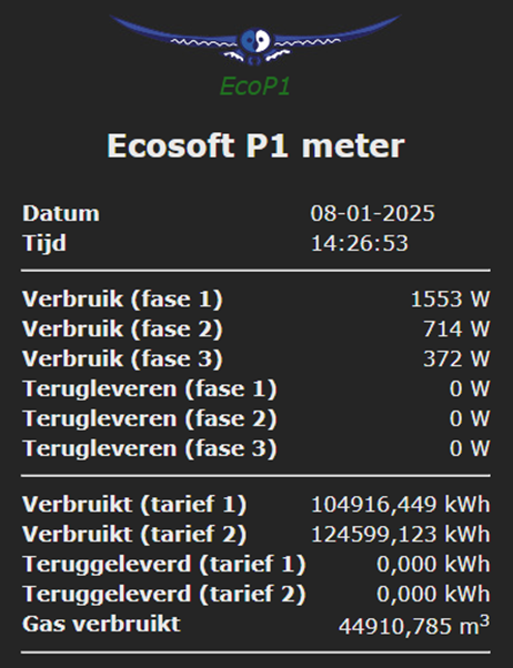 - Open de web-interface van het apparaat zelf (de P1-meter)