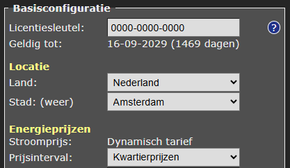 • Ga naar Configuratie > Basisconfiguratie. Zet de Prijsinterval op Kwartierprijzen.