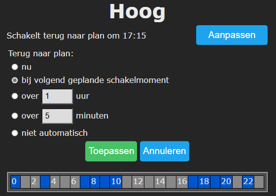 Voor het bedienen van producten die niet automatisch geschakeld kunnen worden, is de Energieplanner een alternatief om het goedkoopste moment van de dag te kiezen om stroom te gebruiken, voor vandaag, en voor morgen (wanneer prijzen voor morgen beschikbaar zijn).