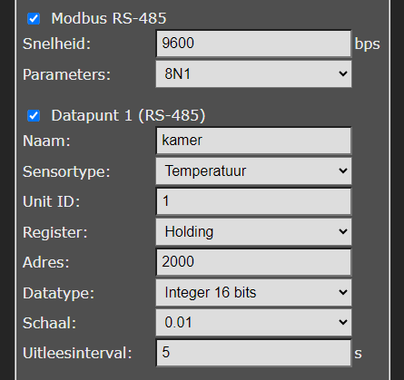 7.8.4 Uitlezen van temperatuursensor via Modbus