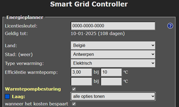 Voor de beste werking van de SGC moet u bij de optie “Opslag leverancier” het bedrag invullen dat daar bovenop per kWh betaald moet worden, zoals belastingen, distributie en andere vaste kosten.